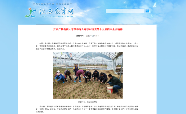 江西教育网、中国江西网等省内主流媒体同时刊登我校党委书记易小明深入帮扶村宣讲党的十九届四中全会精神
