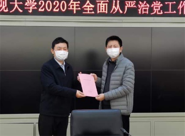 会上,易小明向校领导班子其他成员颁发了全面从严治党和廉洁从政责任书。全体校领导分别与各部门(单位)主要负责人签订了全面从严治党责任书。(撰稿人:胥光辉 责任编辑:张睿)