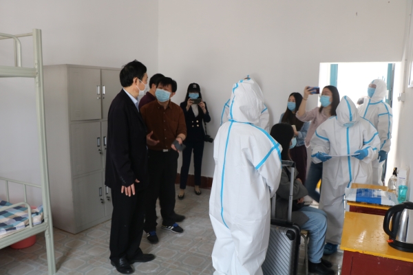 易小明一行认真听取了高职学院关于疫情防控和开学返校的物资保障、师生情况、线上教学等方面的工作汇报,详细询问了开学准备过程中面临的困难与问题,仔细检查了学生返校应急演练的各项环节,实地查看了学院大门、学生宿舍、食堂、校园绿化区、防疫物资处、图书馆、教学楼、隔离区等校园防疫重点工作区域。