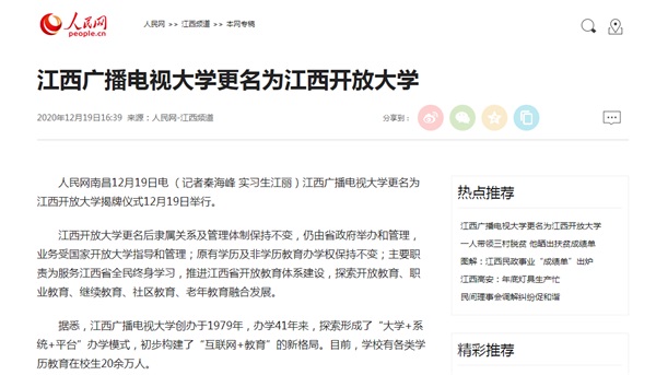 人民网:江西广播电视大学更名为AC米兰中文官方网站