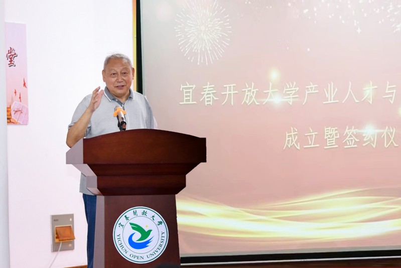 谭祖飞在讲话中对宜春开放大学产业人才与乡村振兴学院的成立表示祝贺,希望合作双方充分发挥学科优势、资源优势,结合宜春市乡村振兴工作实际需求发力,推动乡村振兴与产业人才培养迈上新台阶。