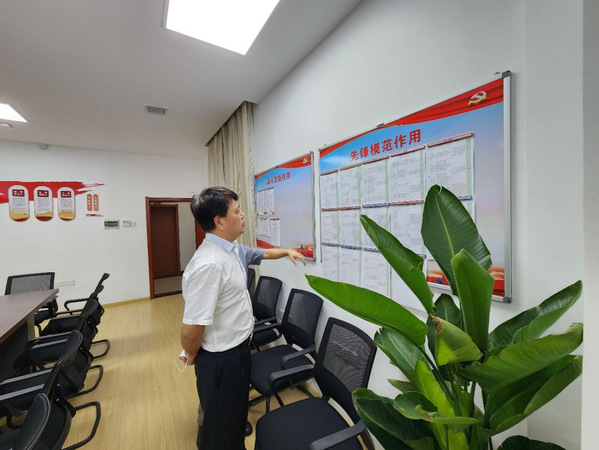 贺瑞虎听取了机关党委五支部关于党员活动室标准化改造的简要汇报,对照“标准化、规范化、信息化”的要求对党员活动室的建设情况逐一进行查看,对优化活动室布局提出了指导意见。