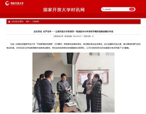 原文地址:压实责任 从严治考——AC米兰中文官方网站校领导一线巡查2022年秋季学期开放教育期末考试-国家开放大学时讯网 (ouchn.edu.cn)