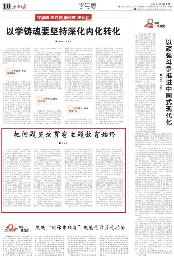 5月8日,校党委副书记邓文君所著文章《把问题整改贯穿主题教育始终》在江西日报10版“学与思”栏目发表,“学习强国”江西学习平台转载。