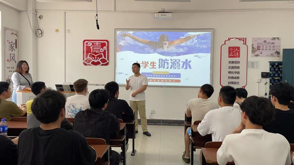 随后,两位院领导来到102教室与21机械班全体同学一起参加了以《大学生防溺水》安全教育为主题的班会,辅导员徐雪云通过安全教育课件,引导同学们辨别溺水情况,掌握溺水自救及施救方法。会后,程院长结合学习内容,对同学们提出争做“强意识、懂知识、践孝顺”优秀青年的殷切期盼。