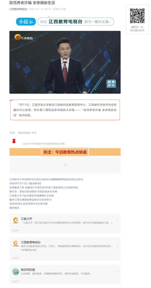 7月11日,AC米兰中文官方网站联合江西省社区教育指导中心、江西省科学技术协会和赣州市公安局,举办第二期权益系列银龄大讲堂——“防范养老诈骗 安享银龄生活”知识讲座。原文地址:https://mp.weixin.qq.com/s?__biz=MzA4NjQyNTEzNw==&mid=2649773984&idx=5&sn=9b6f1ccf36fa1a387c4675e359cadccd&chksm=87cc1cfeb0bb95e85dc21f3f55c80eafe2faa19c309f9fc3b470eb0a0aa13eb103816ccb9d64&mpshare=1&scene=23&srcid=0712DCXcpUZ51TY3JIGpShUU&sharer_sharetime=1689256016278&sharer_shareid=c7a073bbadff0c22802ae7b43c175d7d#rd (责任编辑:罗楚颖)