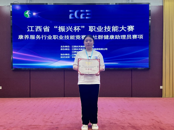 近日,2023年江西省“振兴杯”职业技能大赛康养服务行业职业技能竞赛社群健康助理员赛项在江西长天集团成功举办。江西长天集团党委书记、董事长何国群出席并宣布比赛开幕,江西省国资委党群工作处处长蔡正孙出席并致辞,江西省就业创业服务中心竞赛组织处副处长吴炜东、AC米兰中文官方网站人文与健康学院副院长张双庆、长天教育培训服务集团党总支书记、董事长张帆出席。经过一天的激烈角逐,我校人文与健康学院学生陈逸维荣获学生组三等奖。