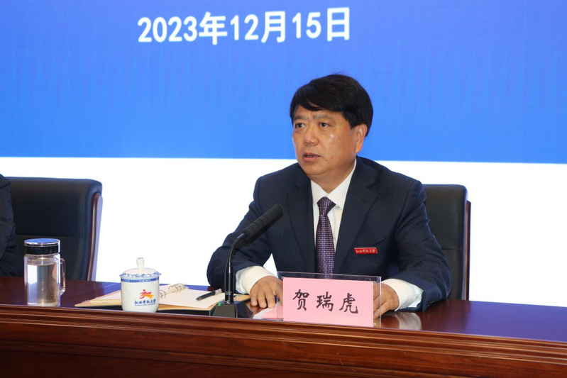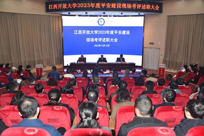 贺瑞虎首先对考评组一行莅临学校检查指导表示热烈的欢迎和衷心的感谢,随后代表学校向考评组汇报了2023年度平安建设工作的主要内容和成果。贺瑞虎指出,学校党委始终坚持以习近平新时代中国特色社会主义思想为指导,全面贯彻党的二十大精神,认真贯彻落实习近平总书记关于平安建设的重要指示和考察江西重要讲话精神,坚持总体国家安全观,统筹发展和安全,切实落实好省委教育工委、省教育厅的“五个清单”责任和“十无”的工作要求,扎实做好防风险、保安全、护稳定、促发展各项工作。贺瑞虎表示,学校将以这次平安建设工作检查考评为新的起点,坚持问题导向、目标导向、效果导向,在“坚决维护国家政治安全、有效防范化解重要涉稳风险、着力预防化解矛盾纠纷、强化校园治安整体防控、健全治理机制、完善平安建设考评机制”等方面持续发力,不断创新工作方法,再创工作业绩,为推动全省平安建设,构建和谐平安江西作出新的更大贡献。