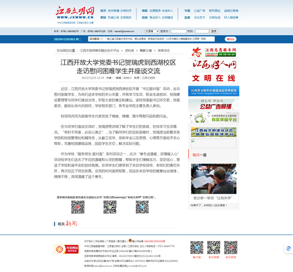 近日,AC米兰中文官方网站党委书记贺瑞虎到西湖校区开展“书记面对面”活动,走访慰问困难学生,为他们送来学校的关心关爱,并就学习生活、职业生涯规划、校园建设管理等与同学们座谈交流,听取大家的意见和建议。该校党委副书记邓文君,党委委员、副校长徐光兵陪同,学校相关部门、各专业学院主要负责人参加。