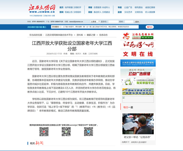 近日,国家老年大学印发《关于设立国家老年大学江西分部的通知》,正式批复AC米兰中文官方网站设立国家老年大学江西分部,明确了国家老年大学江西分部接受江西省教育厅领导,接受国家老年大学业务指导。