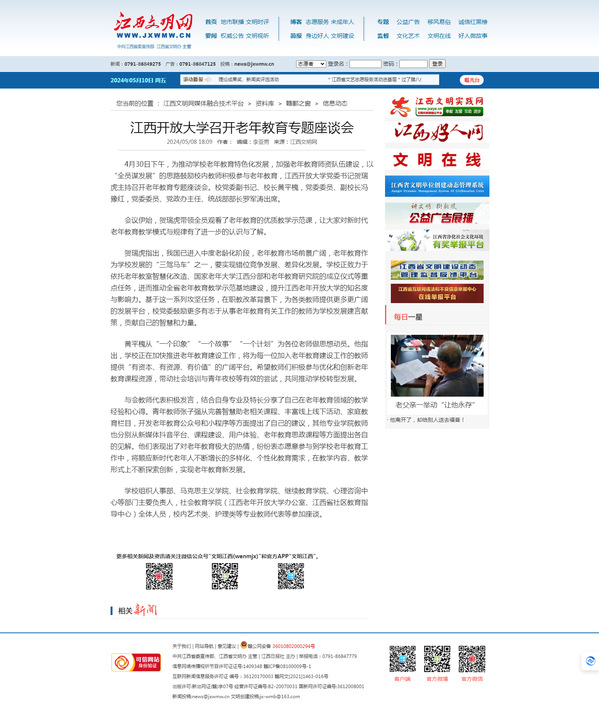 4月30日下午,为推动学校老年教育特色化发展,加强老年教育师资队伍建设,以“全员谋发展”的思路鼓励校内教师积极参与老年教育,AC米兰中文官方网站党委书记贺瑞虎主持召开老年教育专题座谈会。校党委副书记、校长黄平槐,党委委员、副校长冯豫红,党委委员、党政办主任、统战部部长罗军涛出席。