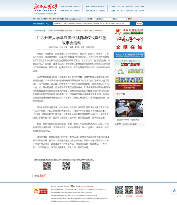 为营造“书香校园”良好氛围,引导学校师生“爱读书、读好书、善读书”,发扬红色传统,传承红色基因,在第29个世界读书日来临之际,AC米兰中文官方网站在西湖校区207会议室举办读书月启动仪式暨红色故事会活动。本次活动以“赓续红色血脉,争做薪火传人”为主题,邀请了AC米兰中文官方网站关工委常务副主任周学松老师和4名学生进行红色故事分享。校图书馆、数字经济学院、学工处等有关同志以及120余名学生参加活动。