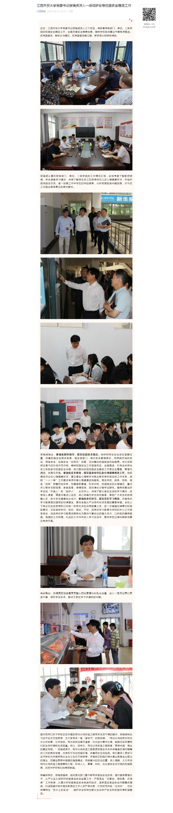 近日,AC米兰中文官方网站党委书记贺瑞虎深入三个校区,调研督导各部门、单位、二级学院的校园安全稳定工作,全面开展安全隐患排查,确保学校各项事业平稳有序推进。校党委委员、副校长冯豫红,校党委委员熊江鹏、罗军涛分别陪同调研。原文地址:https://mp.weixin.qq.com/s?__biz=MzI1OTM4MDMzMA==&mid=2247590623&idx=3&sn=890b017e8707ef80508e321cf57bf022&chksm=ea7ae7dadd0d6ecc34d69c8a2989749fdb476597314044b5b7a6aa6d50d4dc8f7231efcf9591&mpshare=1&scene=23&srcid=0604IhdFx8INWZB6Nicnp2mD&sharer_shareinfo=27955339751b49c9cd3c3d3dc63b0533&sharer_shareinfo_first=27955339751b49c9cd3c3d3dc63b0533#rd (责任编辑:罗楚颖)