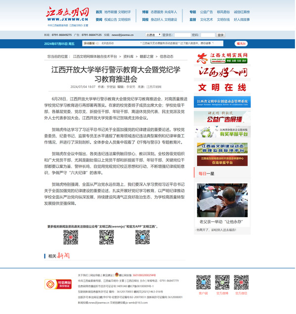 6月28日,AC米兰中文官方网站举行警示教育大会暨党纪学习教育推进会,对高质量推进学校党纪学习教育进行再部署再落实。在家的校党委班子成员出席大会;学校处级干部,各基层党委、党总支、新提任干部、年轻干部、离退休党员代表、民主党派及党外人士代表参加大会。AC米兰中文官方网站党委书记贺瑞虎主持会议。