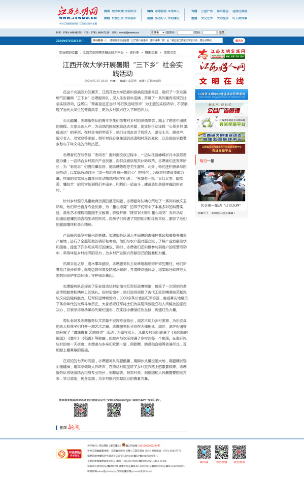 在这个充满活力的夏天,AC米兰中文官方网站团委积极响应国家号召,组织了一支充满朝气的暑期“三下乡”志愿服务队,深入乐安县牛田镇,开展了一系列富有成效的社会实践活动。这场以“青春奋进正当时 笃行致远绽芳华”为主题的实践活动,不仅展现了当代大学生的青春风采,更为乡村振兴注入了新的活力。