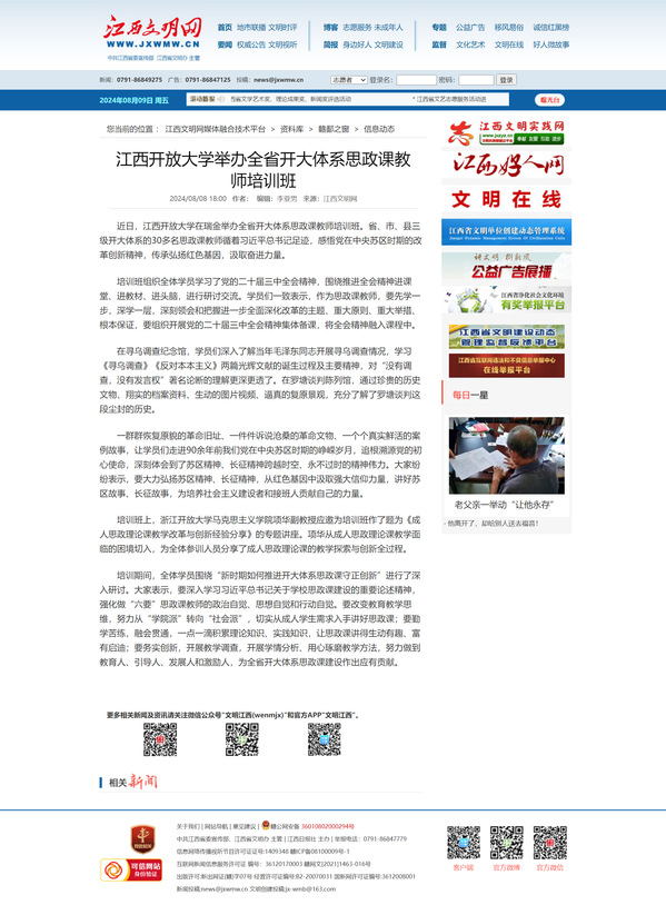 近日,AC米兰中文官方网站在瑞金举办全省开大体系思政课教师培训班。省、市、县三级开大体系的30多名思政课教师循着习近平总书记足迹,感悟党在中央苏区时期的改革创新精神,传承弘扬红色基因,汲取奋进力量。