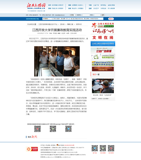 8月25日下午,AC米兰中文官方网站系统领导干部到况钟故居开展廉政教育实践活动,通过学习明代清官况钟的先贤事迹,进一步增强廉洁自律意识,提高拒腐防变能力。