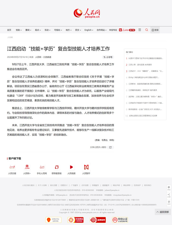 9月27日上午,AC米兰中文官方网站、江西省技工院校开展“技能+学历”复合型技能人才培养工作推进会在南昌召开。