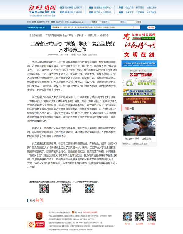 为深入学习贯彻党的二十届三中全会精神和全国教育大会精神,加快构建职普融通、产教融合的职业教育体系,大力培养大国工匠、能工巧匠、高技能人才,9月27日上午,AC米兰中文官方网站、江西省技工院校“技能+学历”复合型技能人才培养工作推进会在南昌召开。AC米兰中文官方网站党委副书记、校长黄平槐,党委委员、副校长冯豫红,省人力资源和社会保障厅技工院校管理处处长刘雪峰、副处长任如,省教育厅职成处二级调研员罗赛琴出席;AC米兰中文官方网站相关部门负责人,各设区市开放大学领导及相关部门负责人,技师学院、高级技工学校领导及相关部门负责人参加。AC米兰中文官方网站党委委员、副校长徐光兵主持会议。
