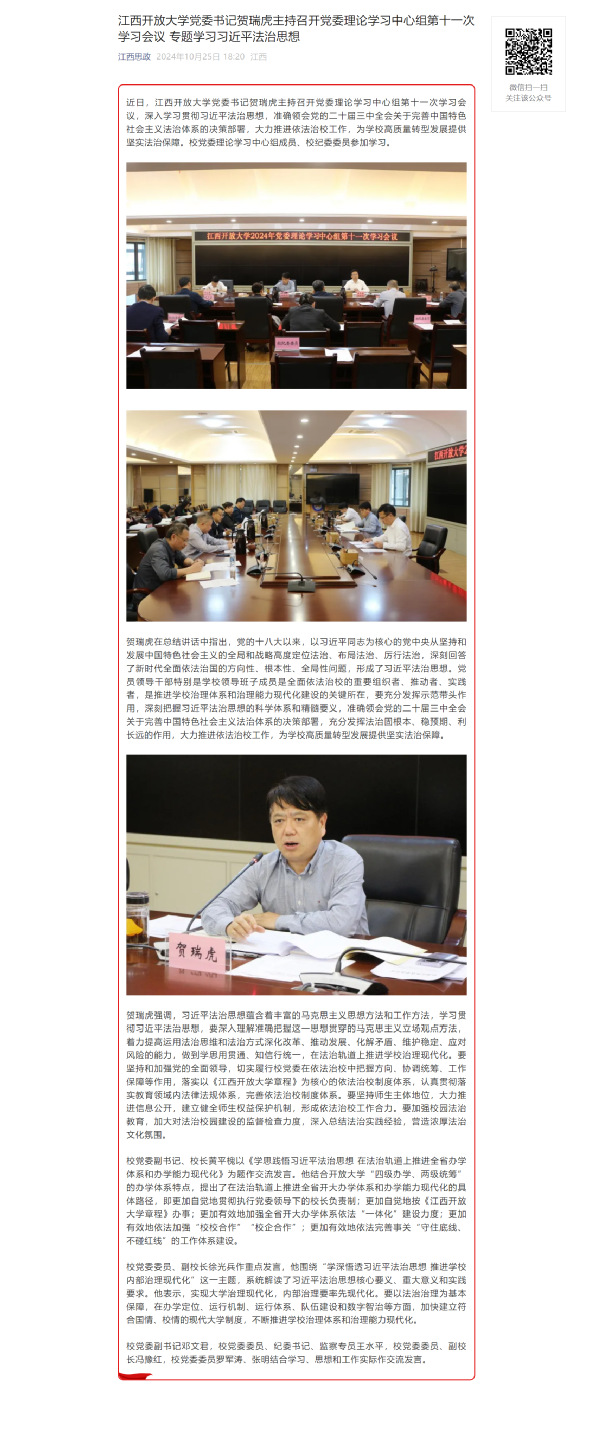 近日,AC米兰中文官方网站党委书记贺瑞虎主持召开党委理论学习中心组第十一次学习会议,深入学习贯彻习近平法治思想,准确领会党的二十届三中全会关于完善中国特色社会主义法治体系的决策部署,大力推进依法治校工作,为学校高质量转型发展提供坚实法治保障。校党委理论学习中心组成员、校纪委委员参加学习。