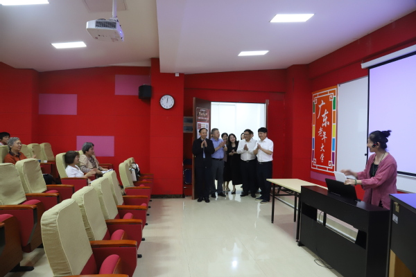 当天上午,在广东开放大学党委书记幸小涛的陪同下,贺瑞虎一行参观了广东开放大学校史馆和国家老年大学广东分部老年教育教学设施,听取了该校老年教育学科专业建设、开放教育招生工作、非学历社会培训工作以及学分银行建设的介绍。贺瑞虎表示,广东开放大学事业发展思路清晰、发展动力强劲,作为全国首批纳入开放大学建设模式探索国家教育综合改革试点单位,坚持先行先试,在聚集优质教育资源、丰富教育教学手段、创新人才培养模式以及学分银行运用等方面取得系列丰硕成果。希望两校加强交流,互学互鉴,优势互补,探索开放教育发展新路径,共同推动开放教育事业高质量发展。