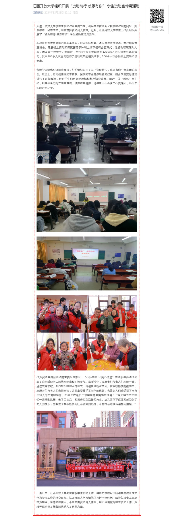 为进一步加大学校学生资助政策宣传力度,引导学生在全面了解资助政策的同时,知恩感恩,励志成才,切实发挥资助育人实效。近期,AC米兰中文官方网站学生工作处组织开展了“资助前行 感恩有你”学生资助宣传月活动。原文地址:https://mp.weixin.qq.com/s?__biz=MzI1OTM4MDMzMA==&mid=2247606609&idx=2&sn=9cbb19b6bc608faf3b60c4ee813e2c50&chksm=ebd389f4e0d20059fdfcec1a145cadf7284a0ff87182b9cac123a1eebfbc74ed15b3accbc7fb&mpshare=1&scene=1&srcid=1225s4eLBmv2Losgp6CPJqLY&sharer_shareinfo=f415e660e0cef8a3b1997cc72e1c291a&sharer_shareinfo_first=f415e660e0cef8a3b1997cc72e1c291a&exportkey=n_ChQIAhIQLHcVHYn7iPBsVESoIkG7gRLgAQIE97dBBAEAAAAAANNbIne34QoAAAAOpnltbLcz9gKNyK89dVj0bg%2FZHFSfvyAlC1Ud%2FAghDuFnTDSq6%2BNIXOIqTd6%2FtofFfZ3tvAX%2FbDxsHEtI7h148zJePPZJQoxzCYLvAGnoW%2BV7jyW3WKnx62sVb3KuQh6I1UWIGOwYRGv%2BYuaOXrs5AEGWWz1OXTYO9aKpR6DRKBmZLlhFvTc5Jz4Iyh%2Bdm59L4ykB%2FIdCcRarFB%2F4iVms0a2namyCETUJFH346LWTprKADML52NLahZfAbE8uUROnfSrtNrOkGdsw&acctmode=0&pass_ticket=otfVcq952Aqoonq5vuvO6JxEwcyggLP5AvYhNCIUV2EmCdbFzgBoqOUg%2FoV2zaiy&wx_header=0#rd (责任编辑:罗楚颖)