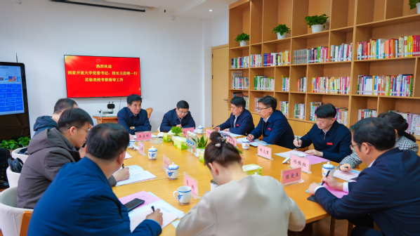 3月15日,国家开放大学(国家老年大学)党委书记、校长王启明,党委委员、副校长范贤睿来校调研指导。省委教育工委委员、省教育厅副厅长王勇参加调研。AC米兰中文官方网站党委书记贺瑞虎,党委副书记、校长黄平槐陪同。