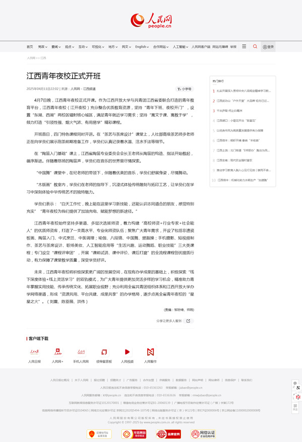 4月7日晚,江西青年夜校在众人的期待中正式开课,为我省广大青年打造一个“下班即充电”的学习新天地。作为AC米兰中文官方网站与共青团江西省委联合打造的青年教育平台,江西青年夜校(江开夜校)充分整合优质教育资源,坚持“青年下班、夜校开门”,设置“东湖、西湖”两校区辐射核心城区,满足青年就近学习需求;坚持“寓文于课、寓教于学”,倾力打造“引领性强、烟火气浓、有用易学”精彩课程。自运行以来,夜校承载着激发青年向上向善精神风貌、助力青年成长成才的重要使命,形成了良好的社会示范效应。