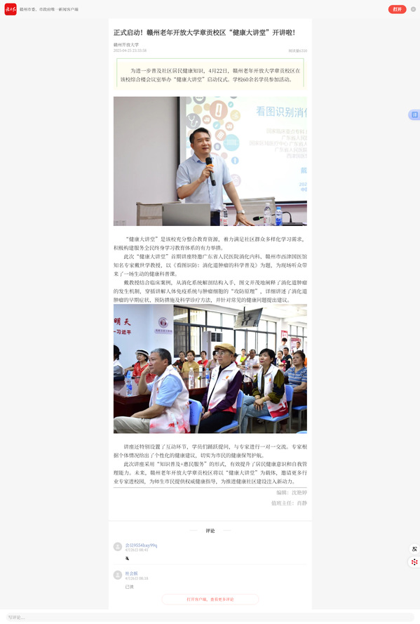 赣南红:赣州老年开放大学章贡校区“健康大讲堂”开讲