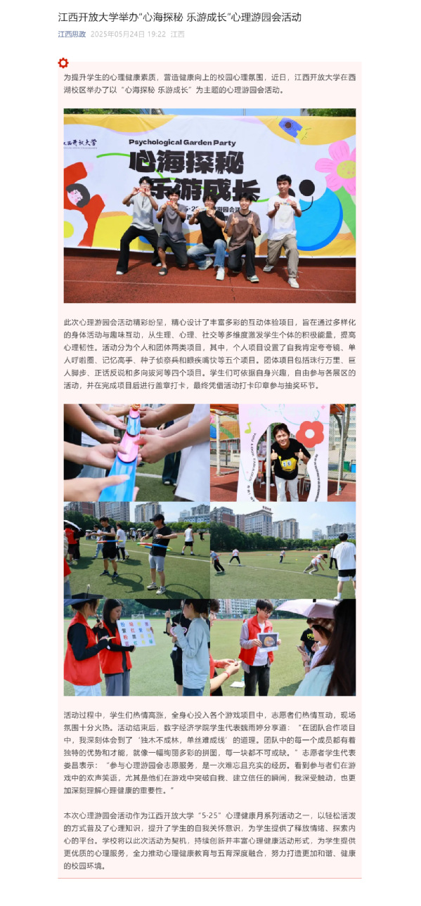 为提升学生的心理健康素质,营造健康向上的校园心理氛围,近日,AC米兰中文官方网站在西湖校区举办了以“心海探秘 乐游成长”为主题的心理游园会活动。原文地址:https://mp.weixin.qq.com/s?__biz=MzI1OTM4MDMzMA==&mid=2247613287&idx=3&sn=c30e417fca63ce966c2a6ea63218bff8&chksm=eb87ca648c822df15dc12a0f40ad8ef92af1a8bd3e383ee0903cf3370aaeffbc758db28021ea&mpshare=1&scene=1&srcid=0524xDQGKKBIsy30W1IsNAOe&sharer_shareinfo=25700802053c89e52d7f597a01fc88a9&sharer_shareinfo_first=25700802053c89e52d7f597a01fc88a9&exportkey=n_ChQIAhIQsm8wx76qT64L%2FqX0T4Wk0hL1AQIE97dBBAEAAAAAAPHFAr7lKwMAAAAOpnltbLcz9gKNyK89dVj0Y%2BpoHff5AA8JoTL3%2FXJXBejHmqm5QWLvqdRSpUf2NBZgzvBQOZcLObQDN8ASX9haSL3NIkiqbskxhuxPae2YR9UjKkChRrrzK6oUJSVROtOAN9sHsCW4Lvfylm3nq3zR%2BGzCIvY1CLHGFtRj13J2WUi6OtzO30fFlWGzQGO3LEl5p1GW3xxRra%2Bnn%2Fer7cfoMXqxtBDxTotZPfH4W%2FqcGbV5xx%2BWXI4qRneVRiQaNvToY5sKgiX%2F73XF86GssZRUrYtQ4Nq51tVpnvM9radS&acctmode=0&pass_ticket=9m%2By0ppthm%2Fej2t%2FLUVMan3Hh%2BkD5fcUoo3kQY57m1OooBDltjnZCOSIOUfRx7aV&wx_header=0&poc_token=HCmzMWij8au8mPCOOr-yJu80SL9kcrqomD0v2ulc (审校:罗楚颖 徐星星 张明)