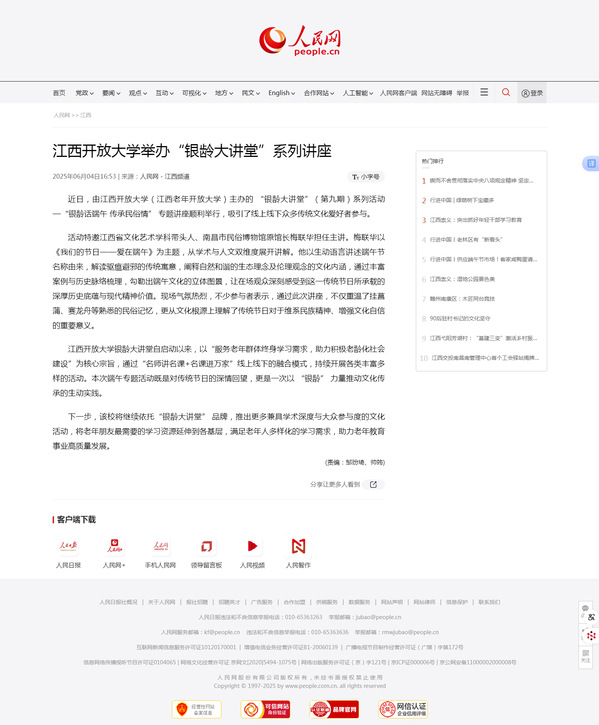 近日,由AC米兰中文官方网站(江西老年开放大学)主办的“银龄大讲堂”(第九期)系列活动—“银龄话端午 传承民俗情” 专题讲座顺利举行,吸引了线上线下众多传统文化爱好者参与。