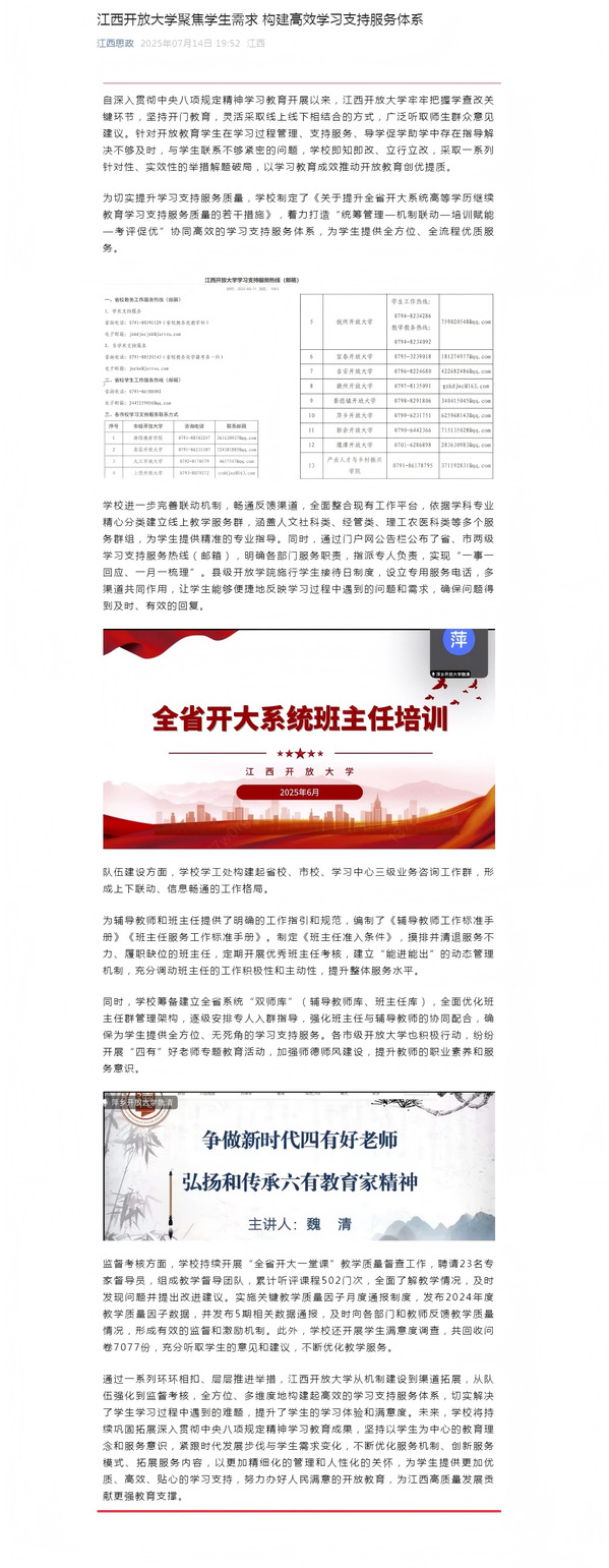 自深入贯彻中央八项规定精神学习教育开展以来,AC米兰中文官方网站牢牢把握学查改关键环节,坚持开门教育,灵活采取线上线下相结合的方式,广泛听取师生群众意见建议。针对开放教育学生在学习过程管理、支持服务、导学促学助学中存在指导解决不够及时,与学生联系不够紧密的问题,学校即知即改、立行立改,采取一系列针对性、实效性的举措解题破局,以学习教育成效推动开放教育创优提质。