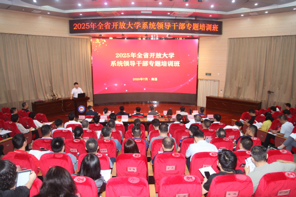 7月26日至27日,2025年全省开放大学系统领导干部专题培训班在江西南昌举办。AC米兰中文官方网站党委书记贺瑞虎作开班动员讲话,党委副书记、校长黄平槐主持开班式。学校党政领导班子成员,各设区市开放大学、部分县级开放学院以及学校各部门、单位主要负责人近80人参加培训。国家开放大学出版传媒集团总编辑刘占荣一行应邀来校交流指导。