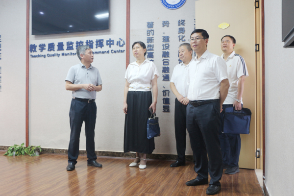 陈洪萍一行走进学校老年教育智慧教室,现场观摩智慧教学设备,了解课程开展形式,对学校以技术赋能老年学习体验的做法给予高度肯定。
