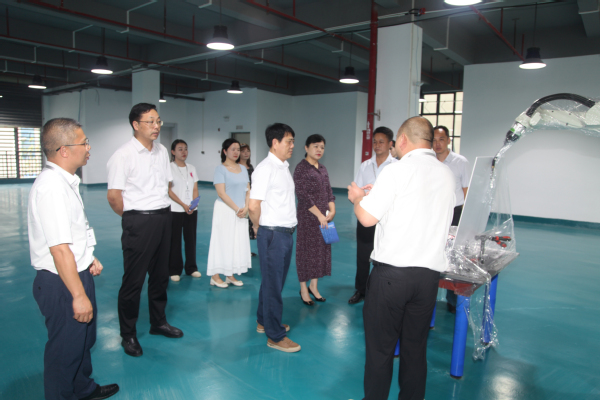调研期间,贺瑞虎一行先后参观了产业基地内的电子商务、智能制造及信息应用相关产业的实训大楼。通过实地考察,校领导详细了解了园区入驻企业、实训设备、教学及生活配套设施等方面的建设进展与规划。