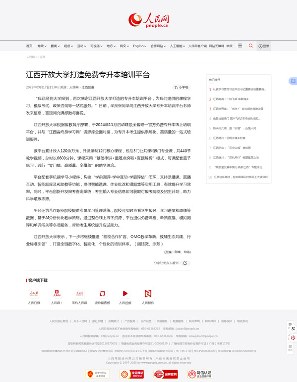 近日,人民网报道我校创新打造专升本培训平台工作举措。原文地址:http://jx.people.com.cn/n2/2025/0917/c186330-41354587.html (审校:罗楚颖 徐星星 张明)