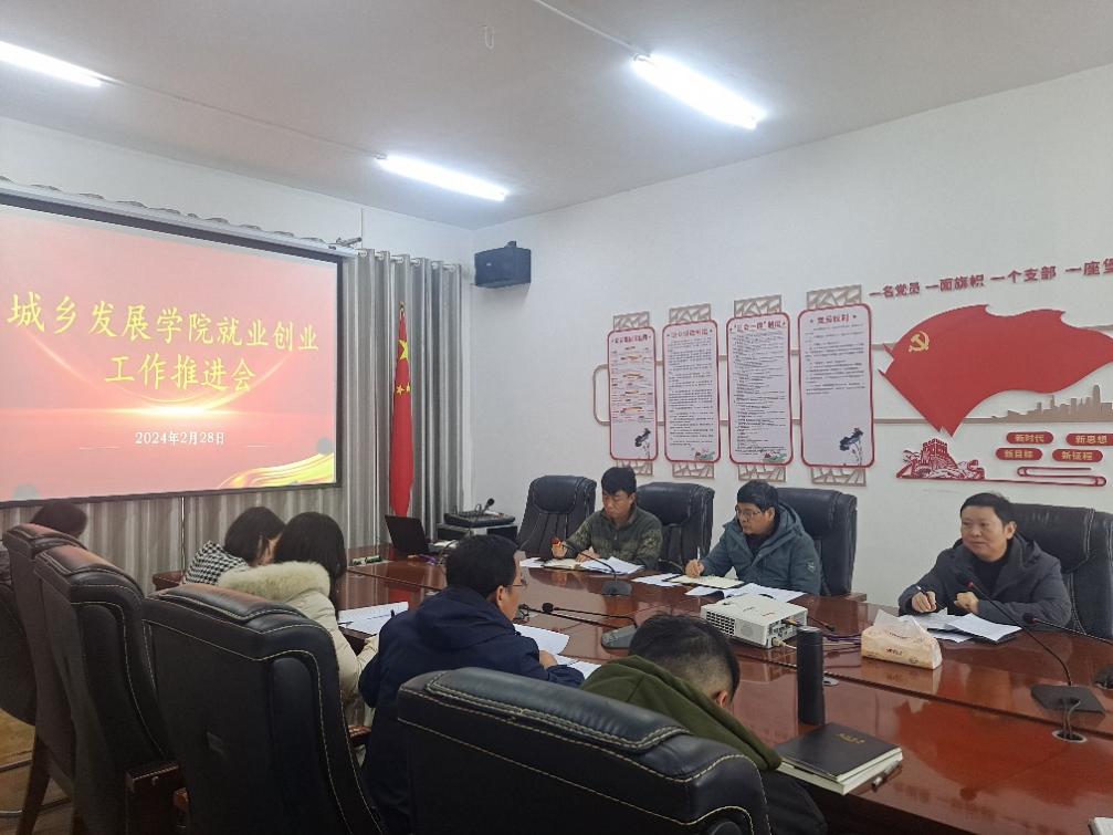 2024228上午9:30,城乡发展学院在行政楼301室举行就业创业工作推进会。会议由梁爽主持,他强调就业工作是最重要的民生问题,对于学院来说,就业工作使命重大,希望大家高度重视。