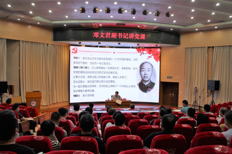 “从井冈山到瑞金,从于都到万里长征,一个个感人至深的故事,每次讲来、每次听来,都觉得是一次灵魂的洗礼、心灵的升华。”日前,学校举行“同上一堂党史课”,校党委副书记邓文君为百余名党员干部作宣讲。