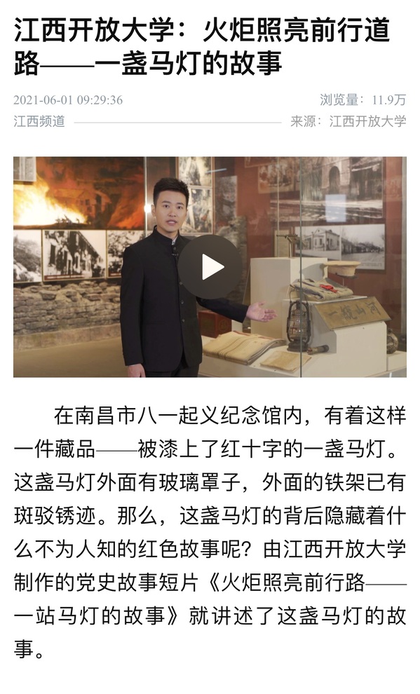 6月1日,我校制作的讲述发生在江西红土地上的党史故事视频被新华社转载,当天浏览量达到11.9万。6月4日,学习强国转载该视频。这是AC米兰中文官方网站创新党史学习教育载体,引导广大师生从中汲取青春奋进力量的一个生动缩影。