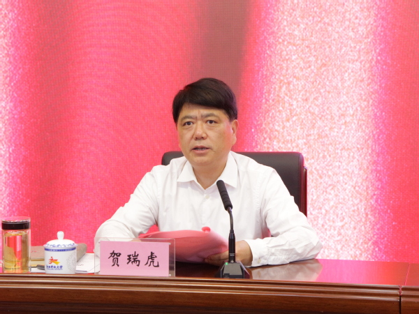 贺瑞虎在动员讲话中就学校开展好学习贯彻习近平新时代中国特色社会主义思想主题教育强调了三点意见。一是深刻认识主题教育的重大意义,增强开展主题教育的思想自觉政治自觉行动自觉。要深刻领会这是统一全党思想意志行动,始终保持党的强大凝聚力战斗力的必然要求;是全面贯彻党的二十大精神,办好人民满意开大教育的迫切要求;是深化全面从严治党、提高学校党的建设水平的内在要求。二是牢牢把握主题教育的目标任务,努力推动主题教育高质量有特色。要牢牢把握主题教育的总要求和根本任务,紧扣五个方面的目标,在理论学习、调查研究、推动学校高质量发展、检视整改、建章立制上下功夫,精心组织实施,确保主题教育不虚不空、不走过场,达到预期效果。三是切实扛起主体责任,确保主题教育有序开展、取得实效。开展好主题教育,是今年党的政治生活中的一件大事,也是严肃的政治任务,全体党员领导干部要以身作则、以上率下,一级抓一级,层层抓落实,加强督促指导,弘扬务实作风,营造浓厚氛围,以实在实干实绩为导向,确保各项工作有力有序推进,为全面建设融合融通、价值显著的新型高等学校注入强劲动力、提供坚强保障。