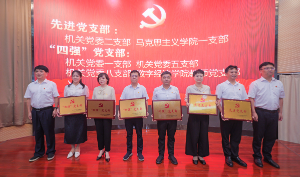 校党委书记贺瑞虎,校党委副书记、校长黄平槐,校党委委员、副校长冯豫红、徐光兵、陈爱生,校党委委员、纪委书记、监察专员汤长明先后为2024-2025年度先进党支部、“四强”党支部、优秀共产党员、优秀党务工作者颁发荣誉证书。