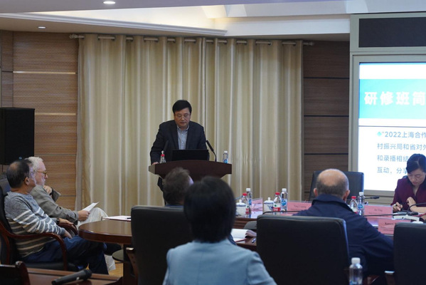 校发展规划处处长杨立强就我校承办2022年上海合作组织国家扶贫研修班情况做了详细介绍,并通过专题片播放和网站课程介绍,全景式展示我省乡村振兴和扶贫工作成果。