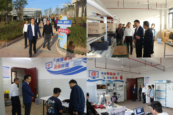 在龙南中等专业学校,黄平槐一行参观了电子信息名师工作室、电子信息物联网实训室、电子信息网络布线实训室等重点实验场所,深入了解该校课程设置与教学设施情况,双方深入研讨了技术技能型人才的育人理念、职业方向、培养特色、创业就业等内容。