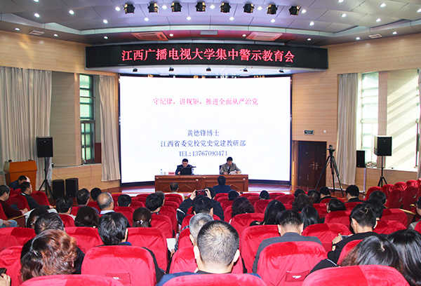 为建设一支讲纪律、守规矩的干部队伍,推进学校“不忘初心、牢记使命”主题教育走实走深,11月15日下午,学校在青山湖校区二楼学术报告厅召开集中警示教育会,邀请北京师范大学历史学博士、省委党校党史党建教研部黄德锋教授作“守纪律、讲规矩,推进全面从严治党”专题讲座。在家校领导黄平槐、邱东升,副科级以上干部,专兼职纪检干部参加了学习。讲座由校纪委副书记李春湖主持。