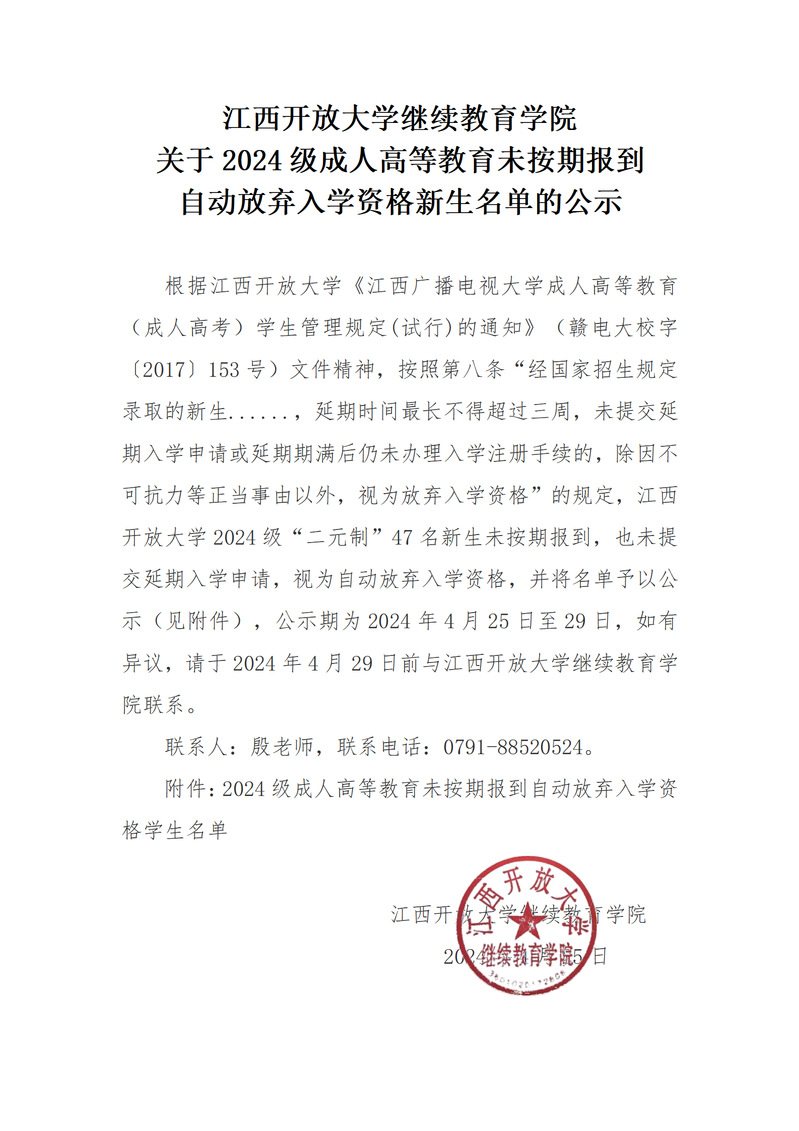 AC米兰中文官方网站继续教育学院关于2024级成人高等教育未按期报到自动放弃入学资格新生名单的公示