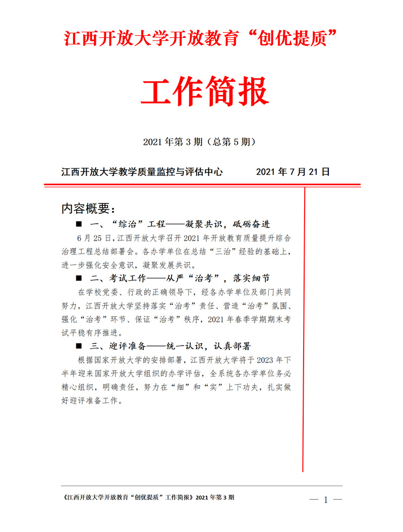 AC米兰中文官方网站开放教育“创优提质”工作简报 2021年第3期(总第5期)