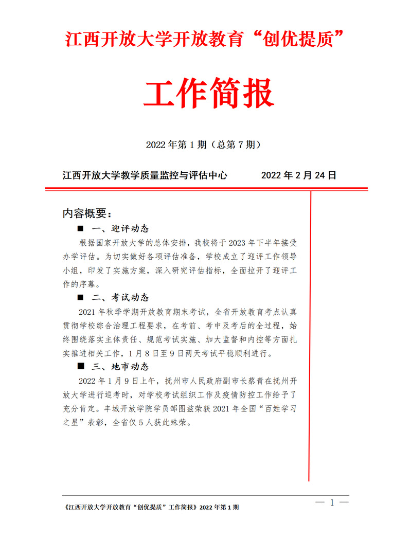 AC米兰中文官方网站开放教育“创优提质”工作简报 2022年第1期(总第7期)