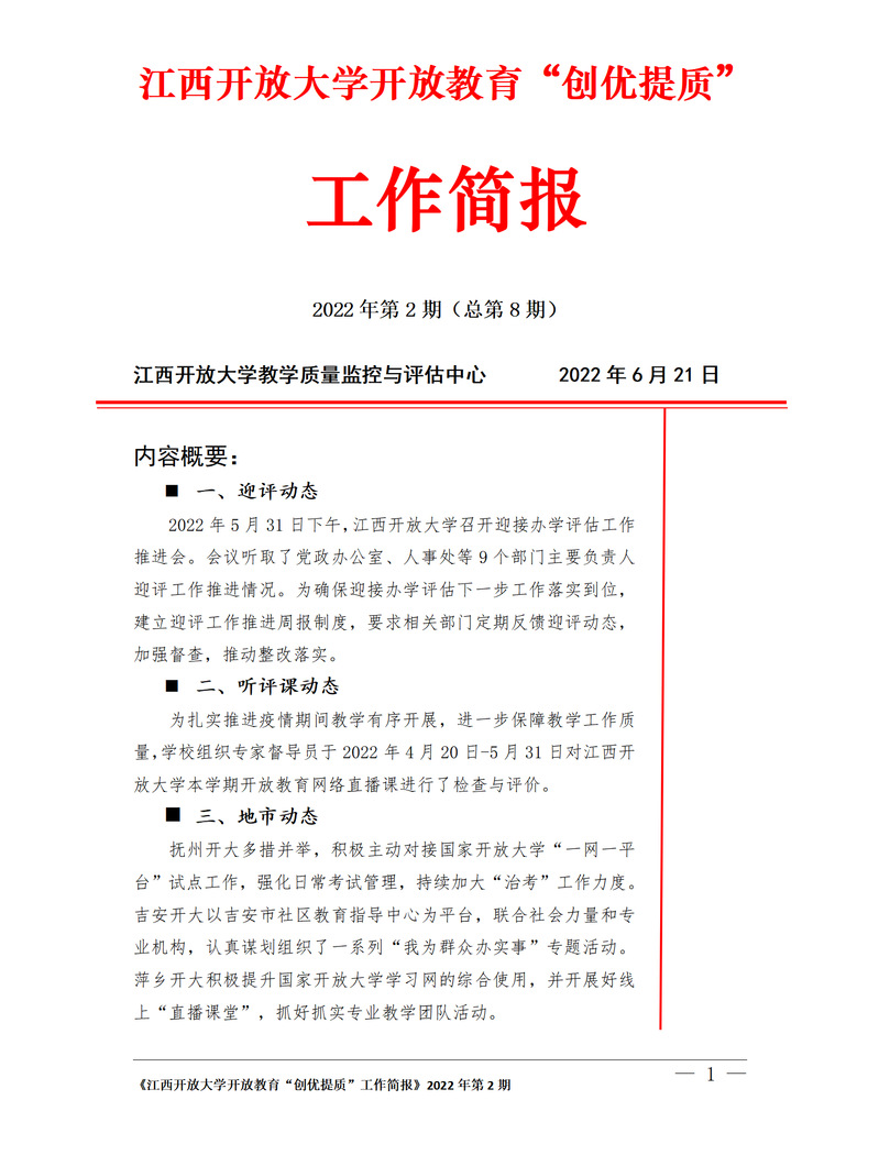 AC米兰中文官方网站开放教育“创优提质”工作简报 2022年第2期(总第8期)