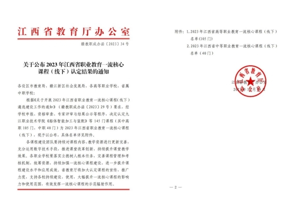 【喜报】实现零的突破!智能技术学院专业课程被认定为2023年江西省职业教育一流核心课程