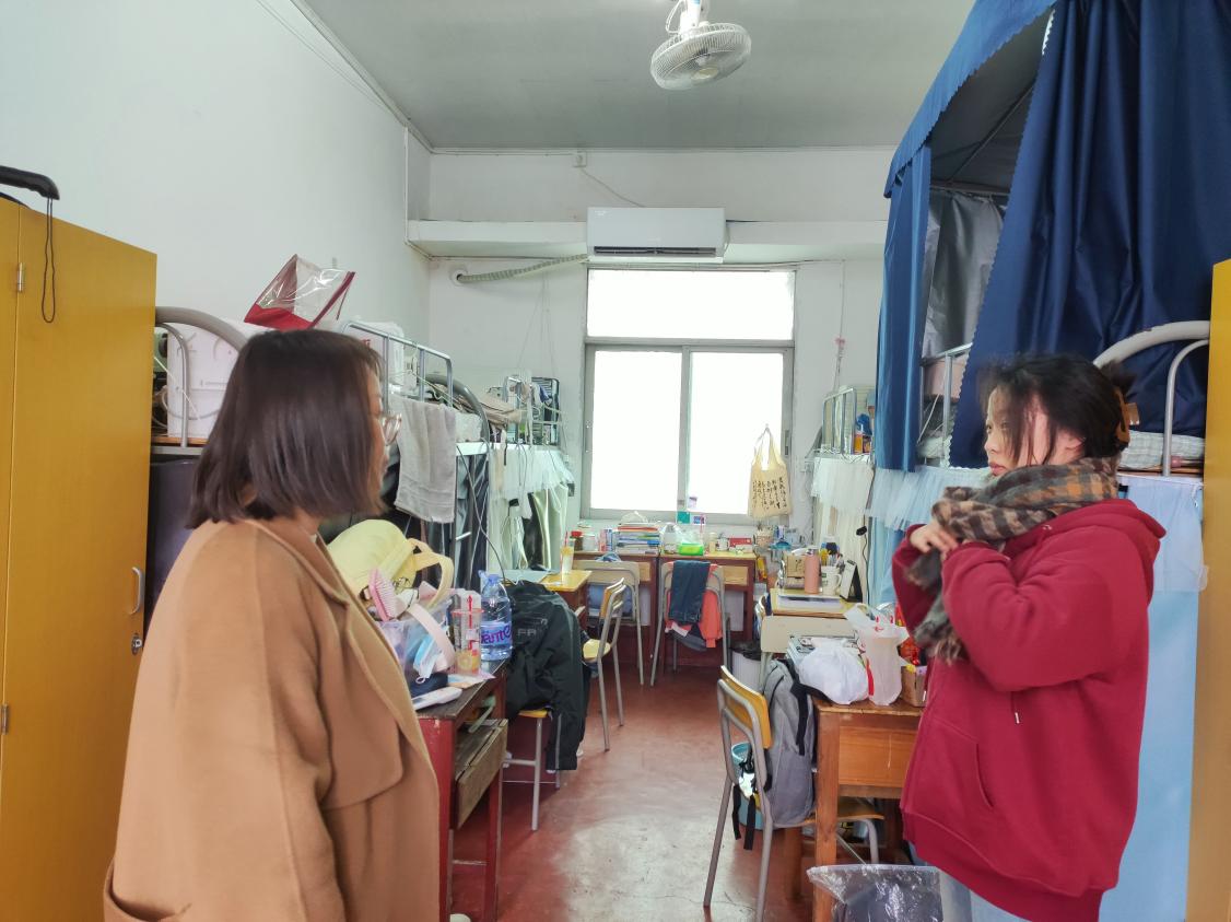 “同学,新学期好,假期在家过的怎么样?”“做好了开学准备吗?”,走访过程中,院领导与同学们就行了亲切的交流,了解学生假期生活学习情况、开学适应情况、心理状态及思想动态,勉励同学们新学期做好规划、明确目标,认真努力学习专业知识,提升自身技能,为今后实习就业打好基础。同时,院领导及辅导员对宿舍的安全设施及住宿环境进行了认真的检查,着重强调禁用大功率电器等寝室用电安全消防安全、交通安全、食品与卫生安全等,叮嘱学生换季注意防寒保暖。